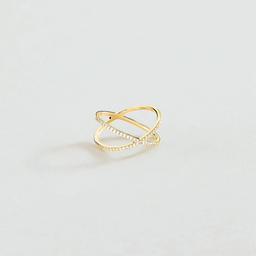 Bague en argent 925/1000 doré à l’or 750/1000 en forme de croix pavée d’oxydes de zirconium..