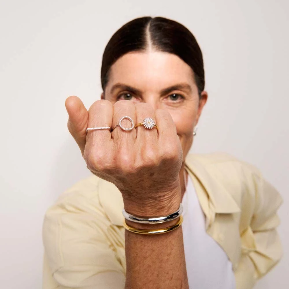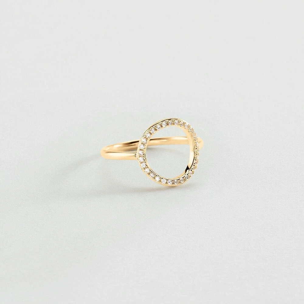Bague en argent 925/1000 doré à l’or 750/1000 en forme de rond pavé. .
