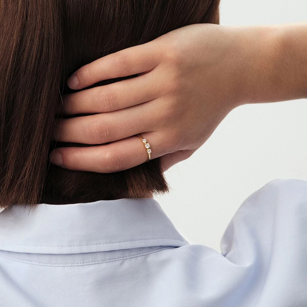 Bague en argent 925/1000 doré à l’or 750/1000 serti de 3 oxydes de zirconium. .