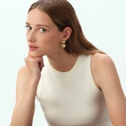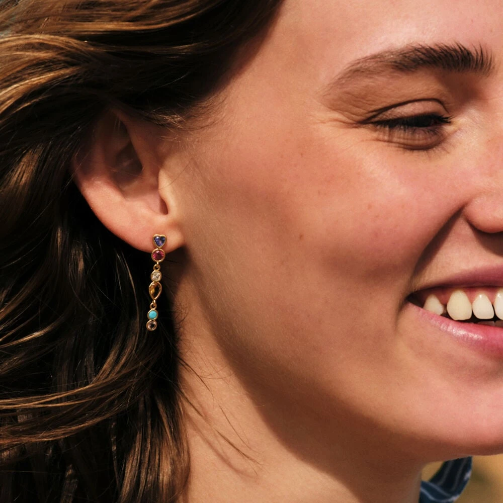 Boucles d’oreilles mi-longues en laiton doré à l’or 750/1000 serti d’oxyde de zirconium différentes formes..