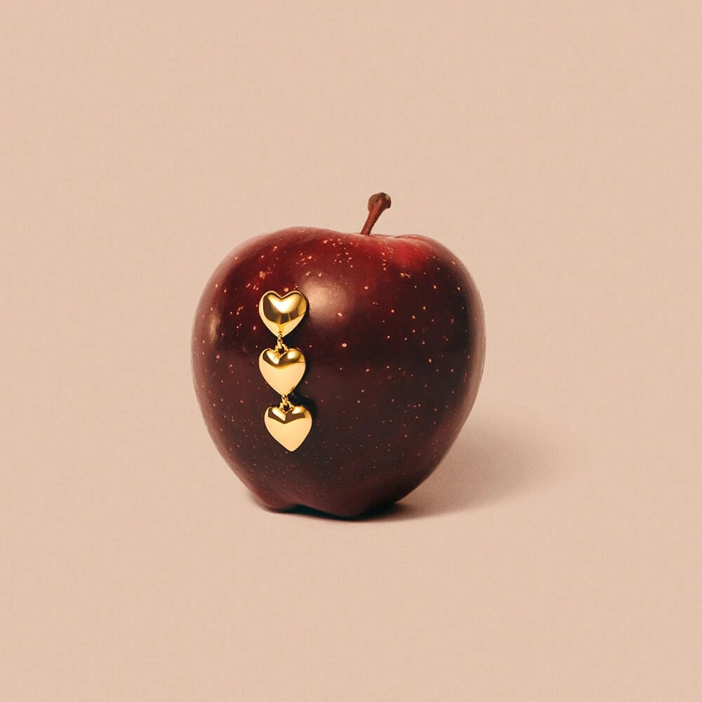 Boucles d’oreilles linéaires élégantes, composées de trois cœurs en métal doré, pour une touche sophistiquée et moderne.