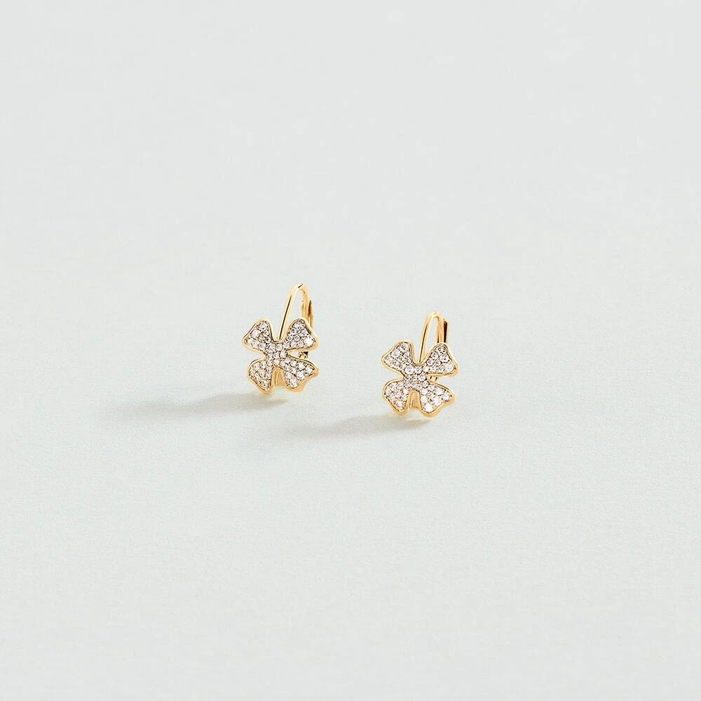 Boucles d’oreilles dormeuse en forme de trèfle en laiton doré à l’or 750/1000 et rhodié sous les oxydes de zirconium.