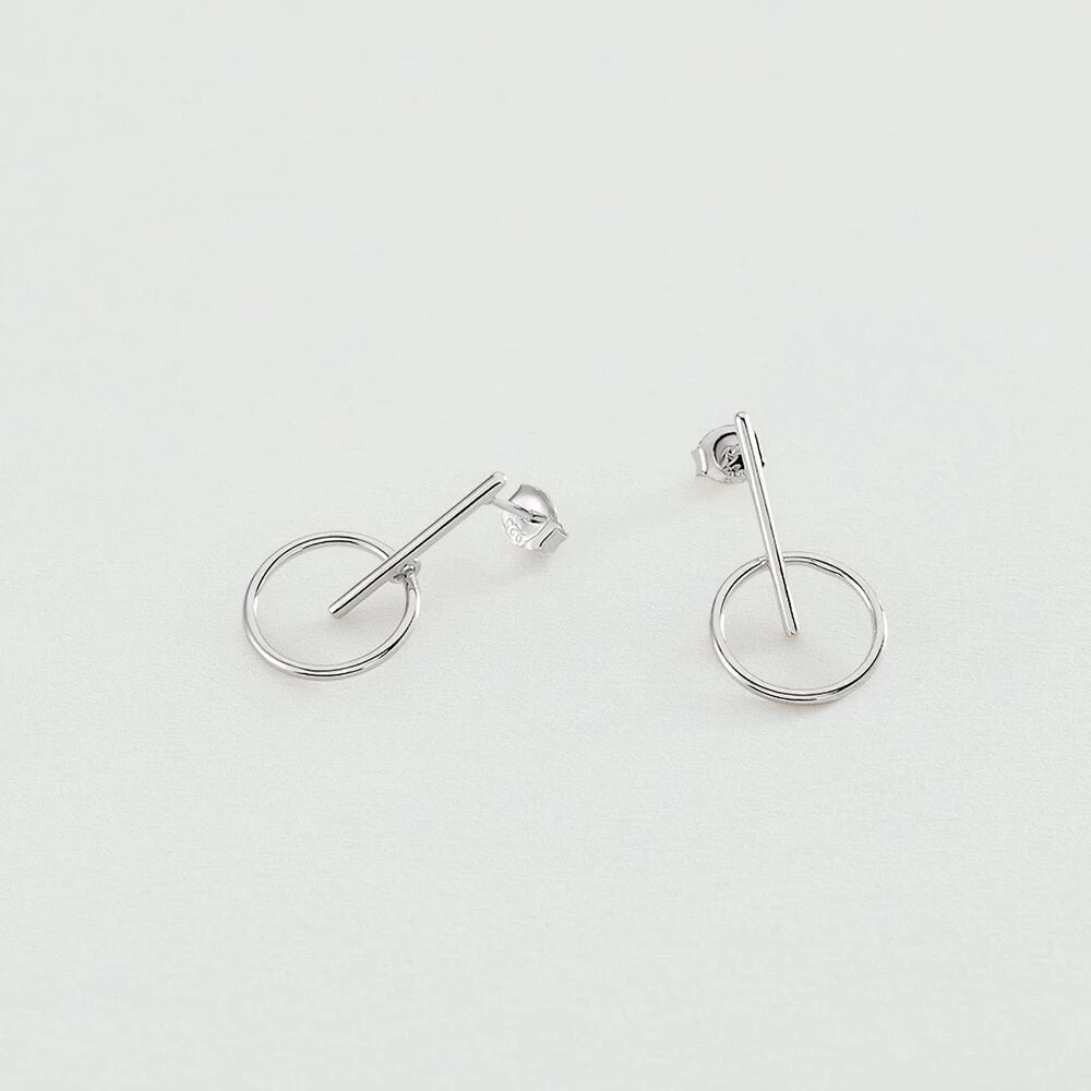 Boucles d’oreilles mi-longues, en argent véritable, composées d’un anneau évidé sur une barre.