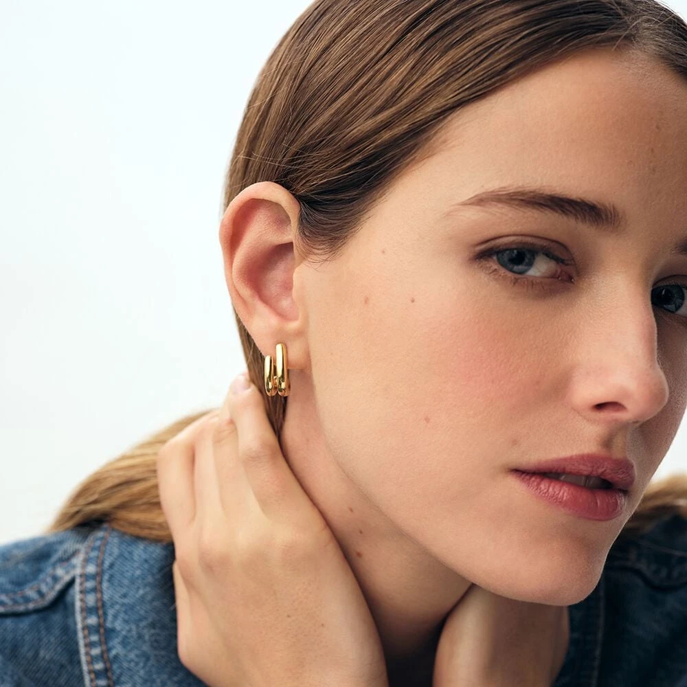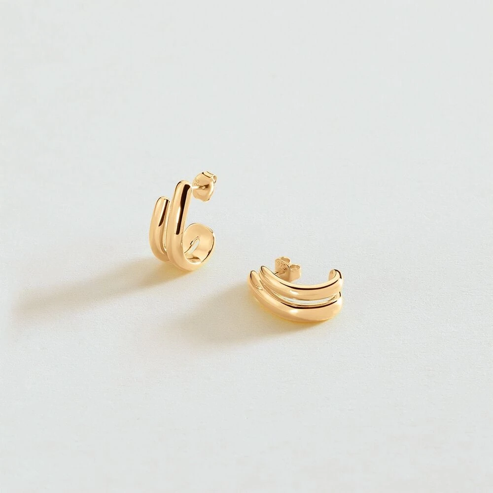 Petites doubles créoles en argent 925/1000 doré à l’or 750/1000.