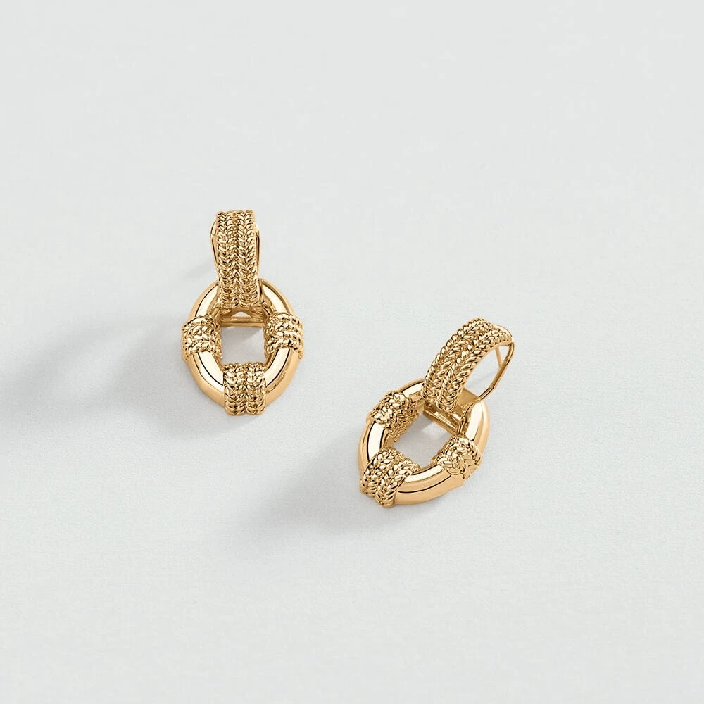Boucles d’oreille en laiton doré à l’or fin faites avec un maillon vintage Agatha.