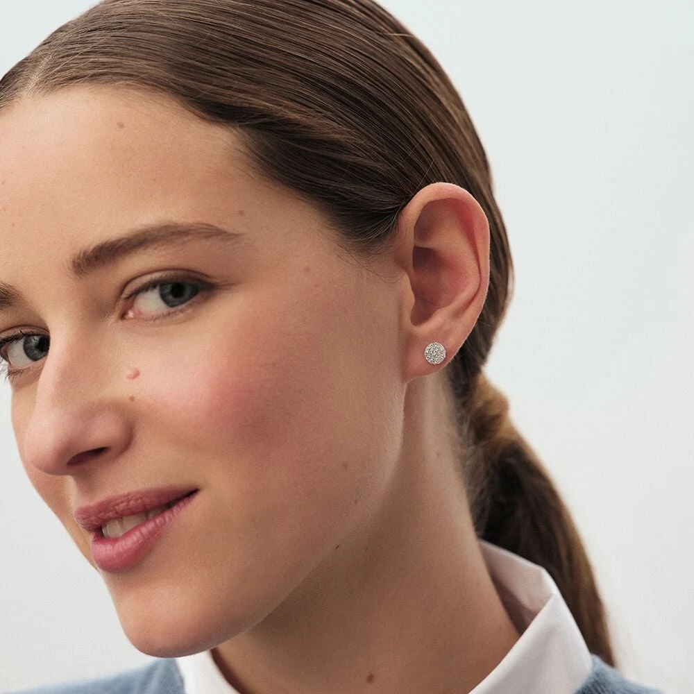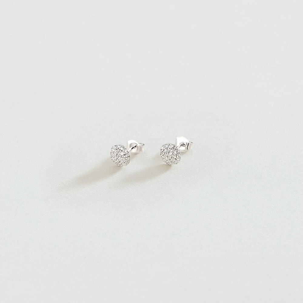 Boucles d’oreilles puces en argent 925/1000 petits ronds pavés d’oxydes de zirconium..