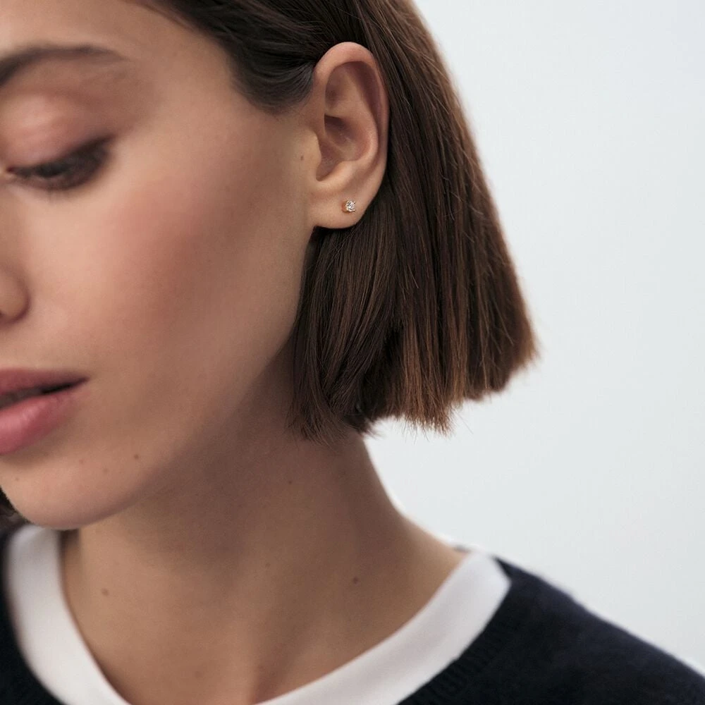 Boucles d’oreilles puces, en argent véritable dorées 750/1000, ornées d’oxydes de zirconium griffés de 3 mm.