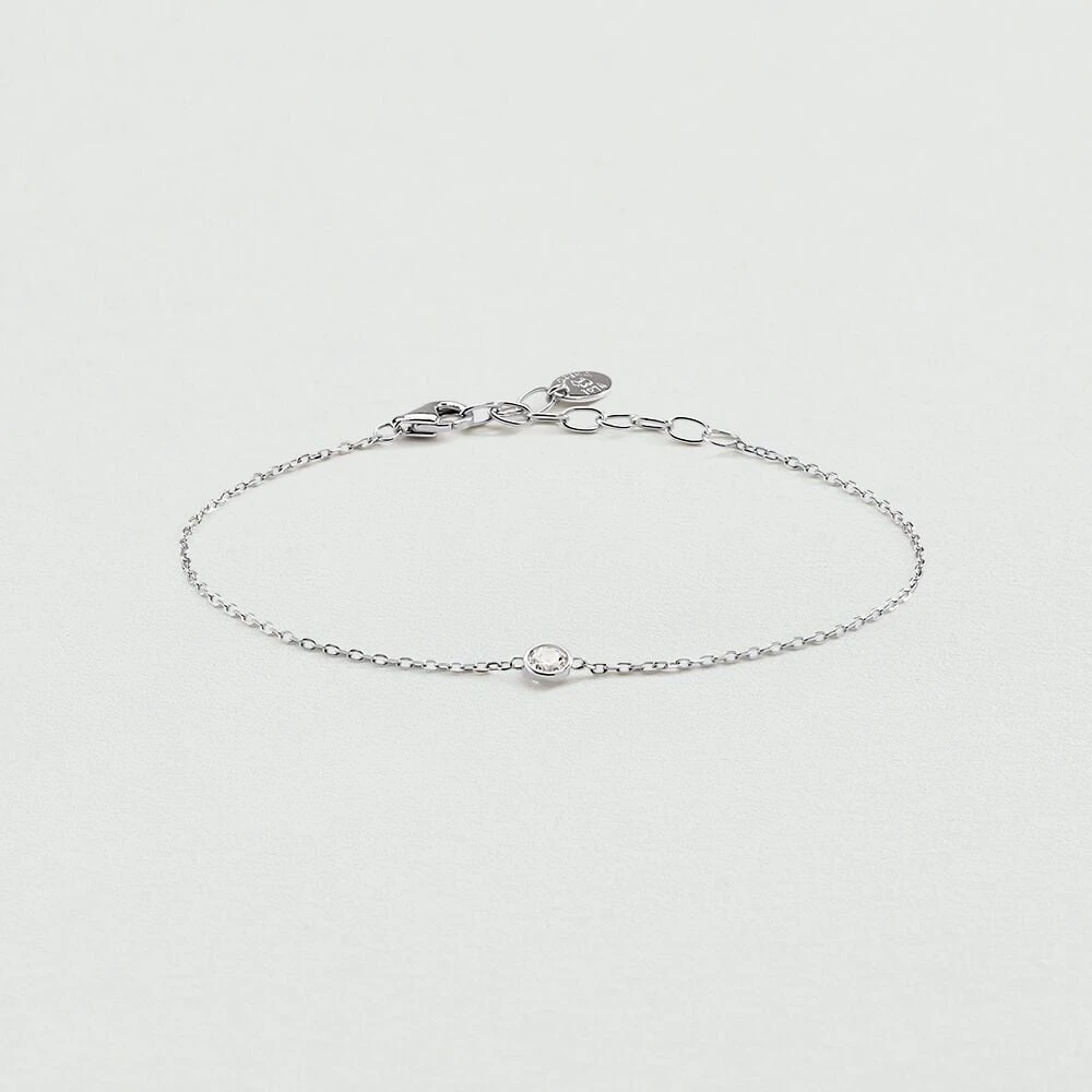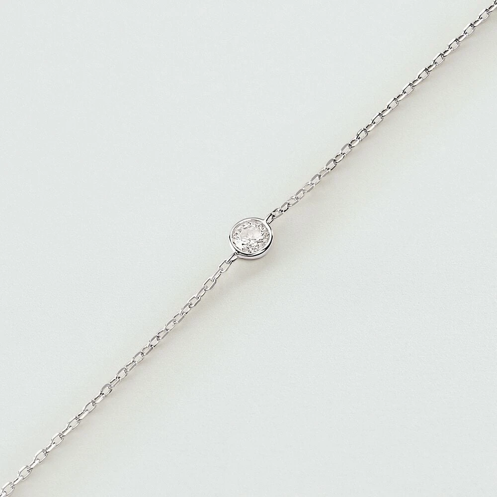 Bracelet souple en argent véritable orné d’un oxyde de zirconium serti clos. Ce bijou mesure 150mm et contient une rallonge de 30mm