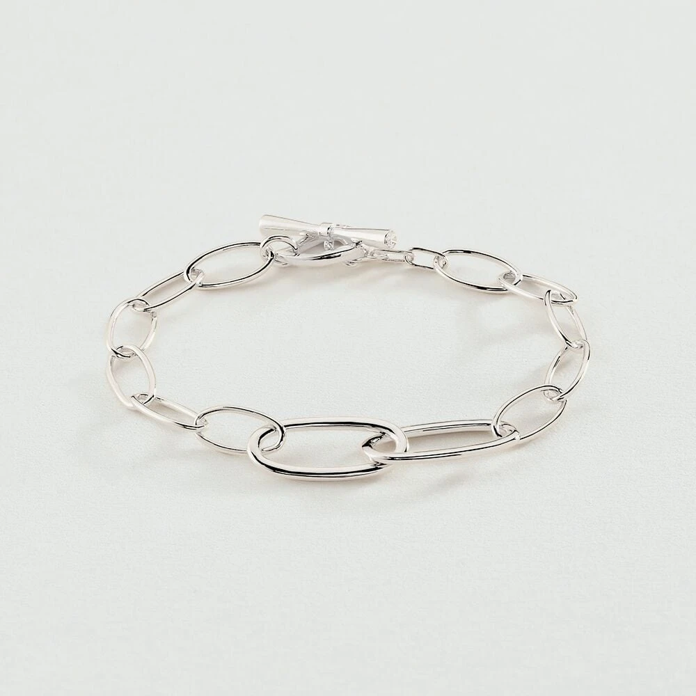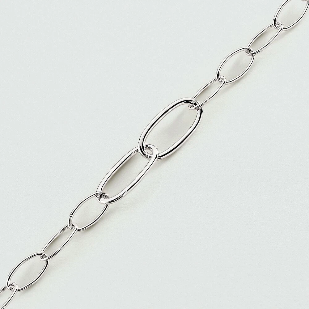 Bracelet souple, en laiton rhodié, maillons ovales allongés dont deux XL au centre et notre fermoir T identitaire.
