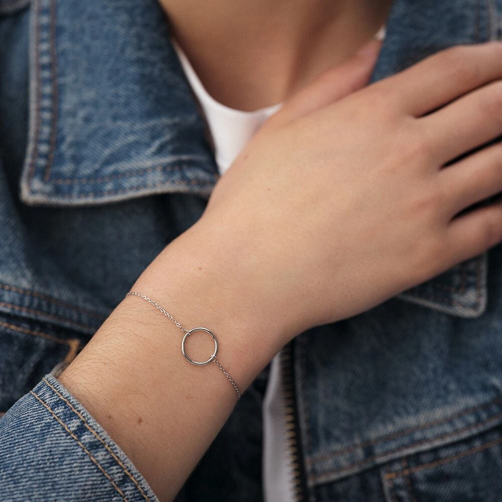 Bracelet, en argent véritable, avec un anneau évidé monté sur une chaine fine.