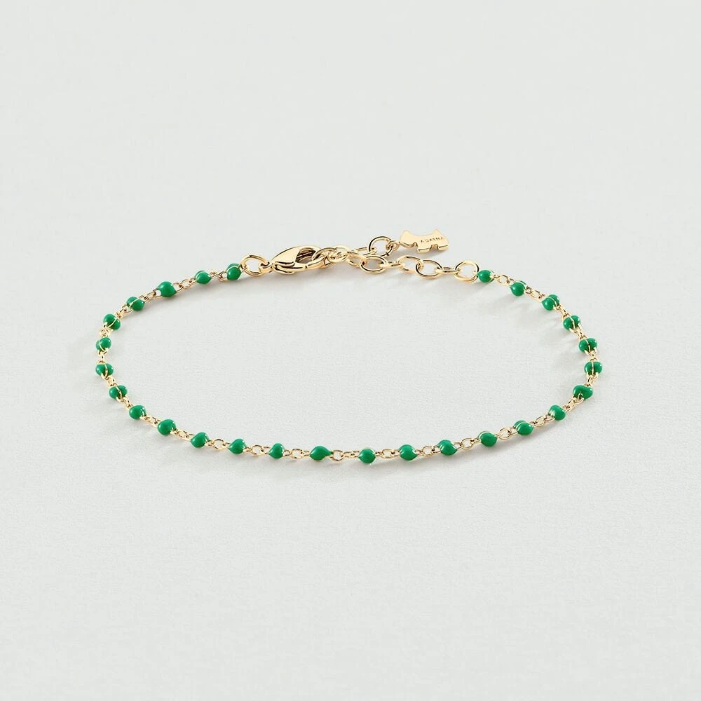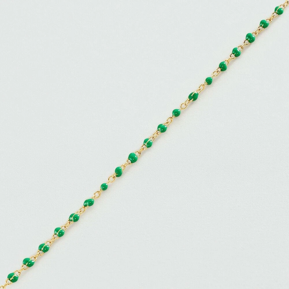 Bracelet, en laiton doré 750/1000, perles d’émail sur toute la longueur. Ce bijou mesure 150mm et contient une rallonge de 30mm
