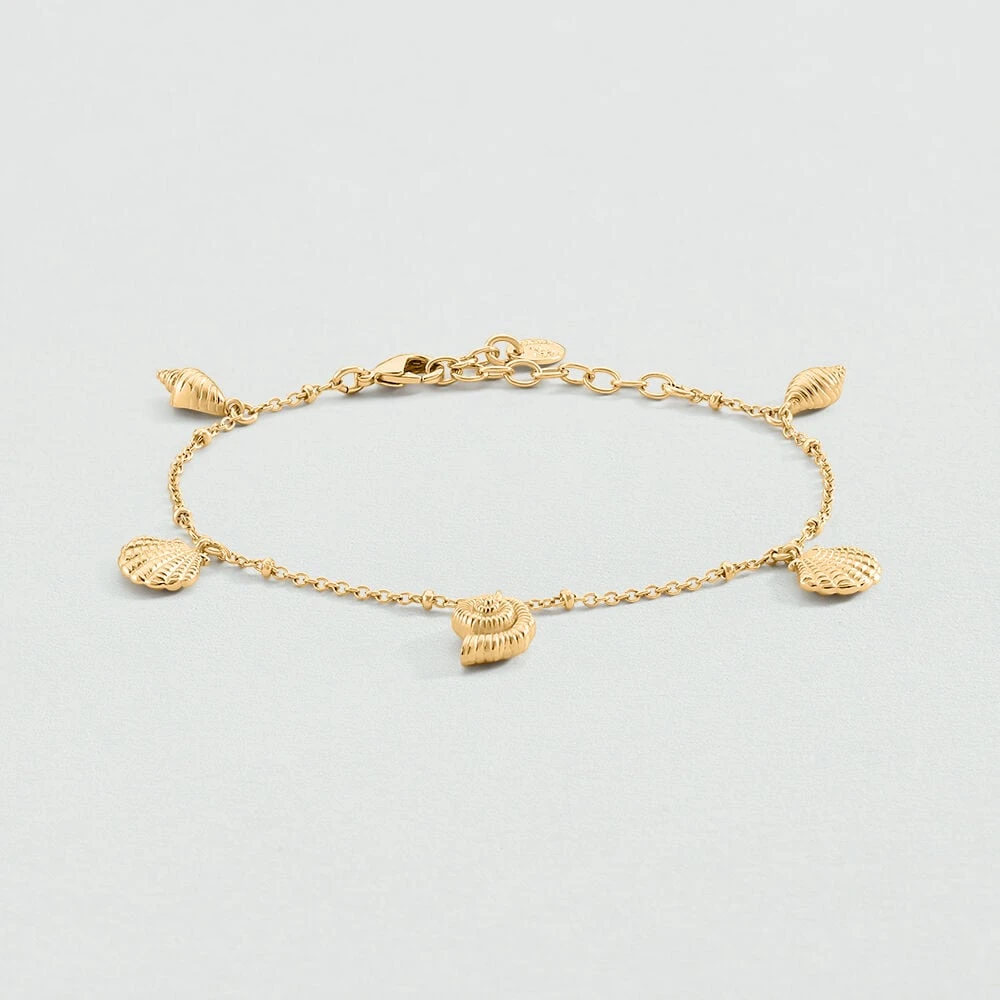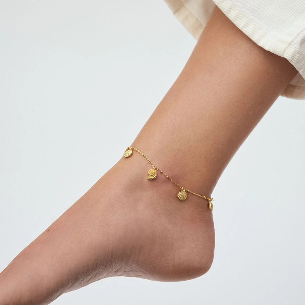 Bracelet de cheville, en acier inoxydable, coquillages en pampilles.