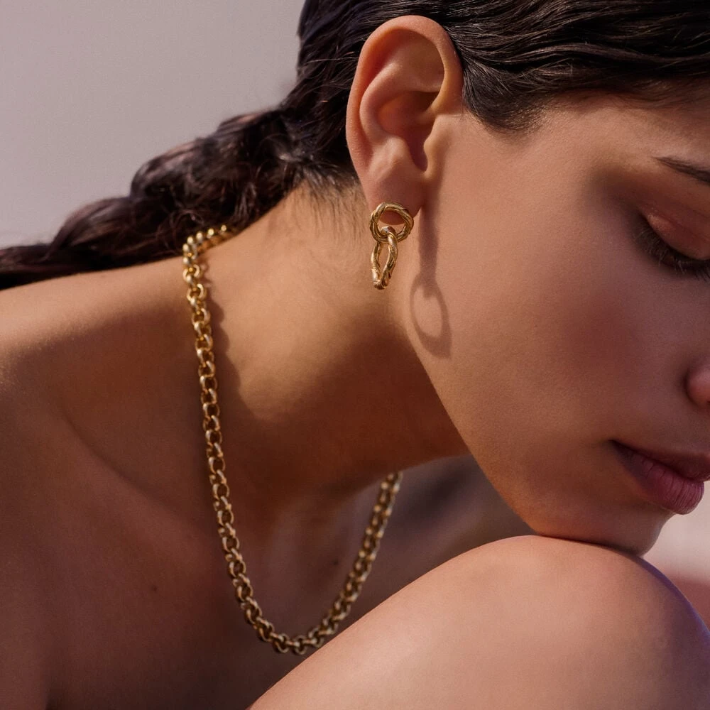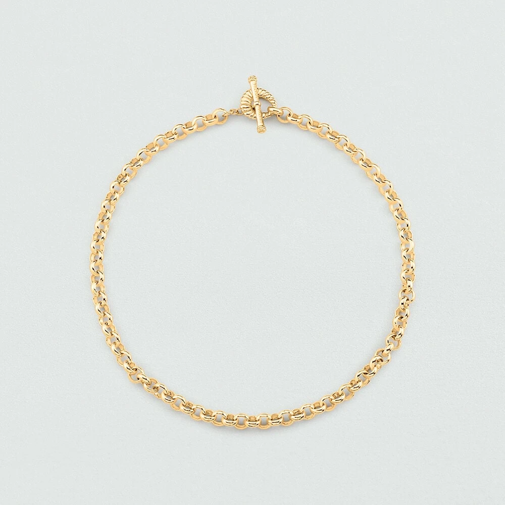 Collier en laiton doré à l’or 750/1000 fait d’une maille jaseron épaisse..