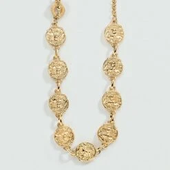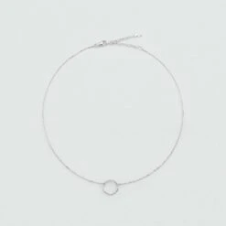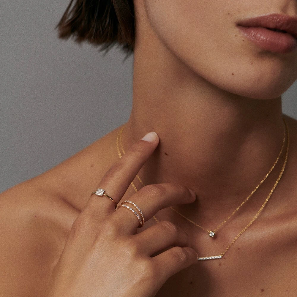 Collier court en argent véritable doré 750/1000, orné d’une petite barre rigide pavée d’oxydes de zirconium.