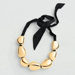 Collier court en étain doré à l’or 750/1000 maille montre.. Ce bijou mesure 420mm et contient une rallonge de 50mm