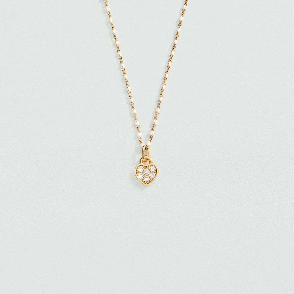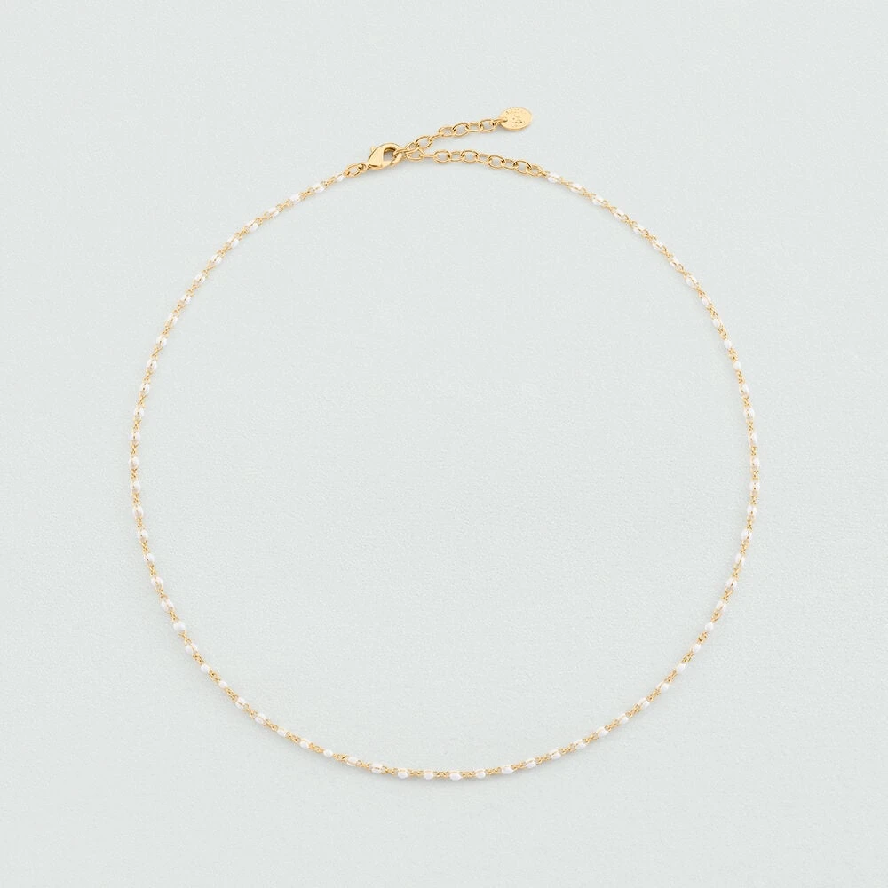 Collier en laiton doré à l’or fin avec de petites billes d’émail coloré Ce bijou mesure 375mm et contient une rallonge de 50mm