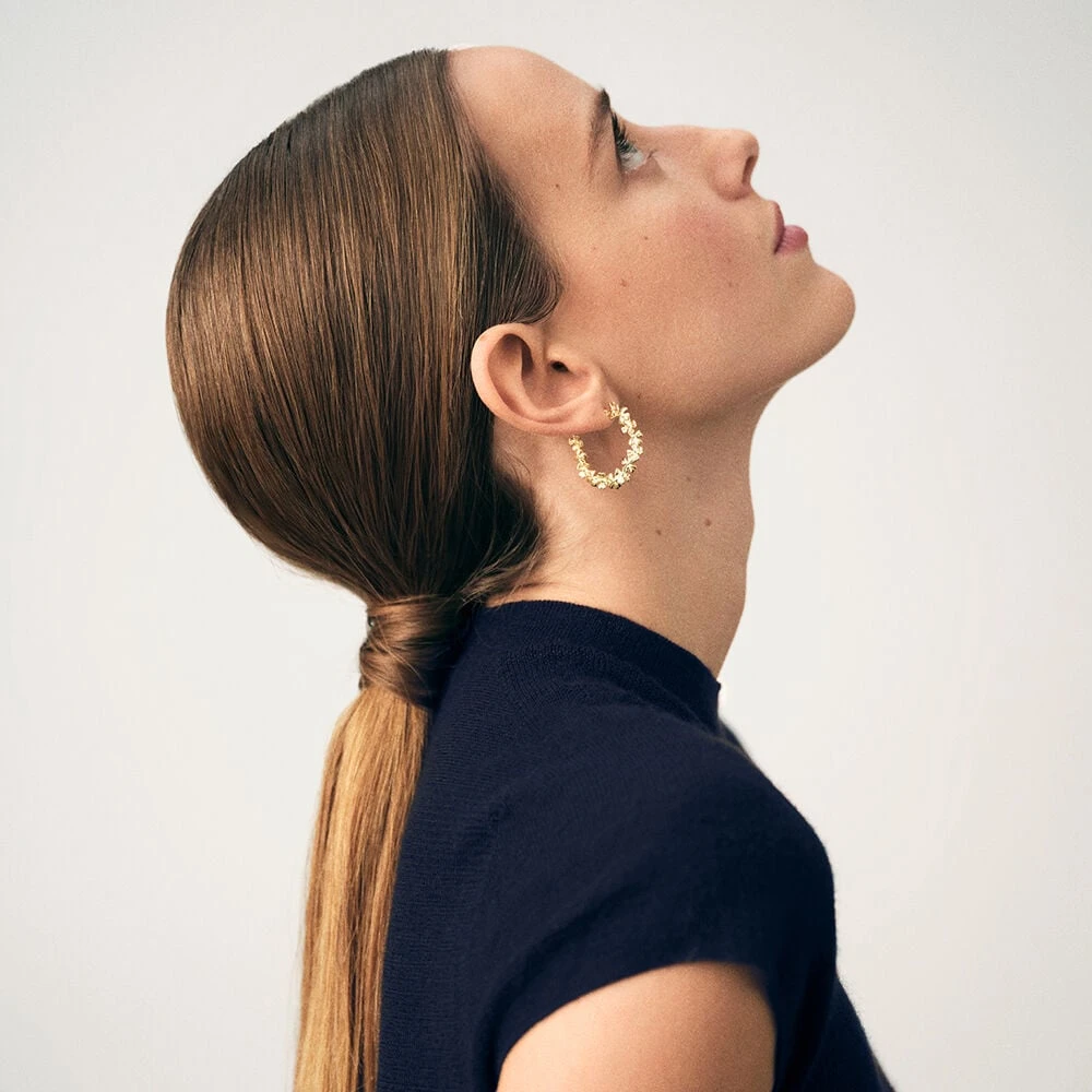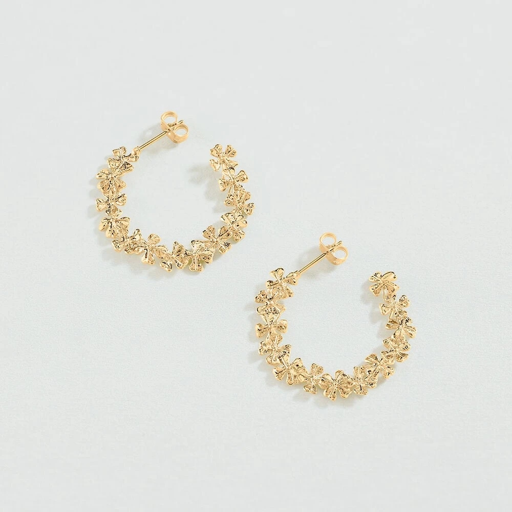 Créoles en laiton doré à l’or 750/1000 en forme de petits trèfles.