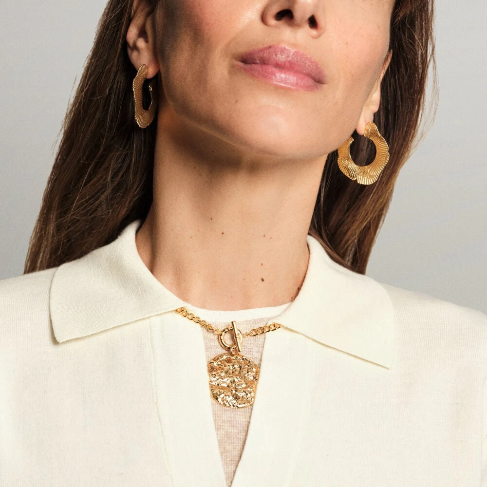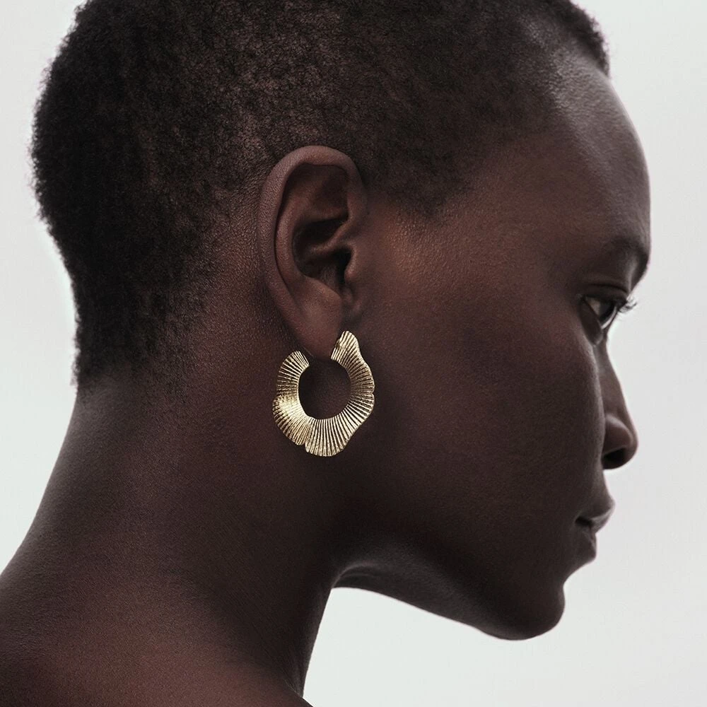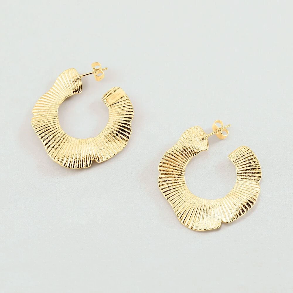 Créoles, en laiton doré 750/1000, texture de coquillage.