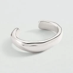 Bracelet jonc et organique en laiton rhodié. À porter seul pour un effet affirmé ou en accumulation avec d’autres pièces pour un look plus sophistiqué..