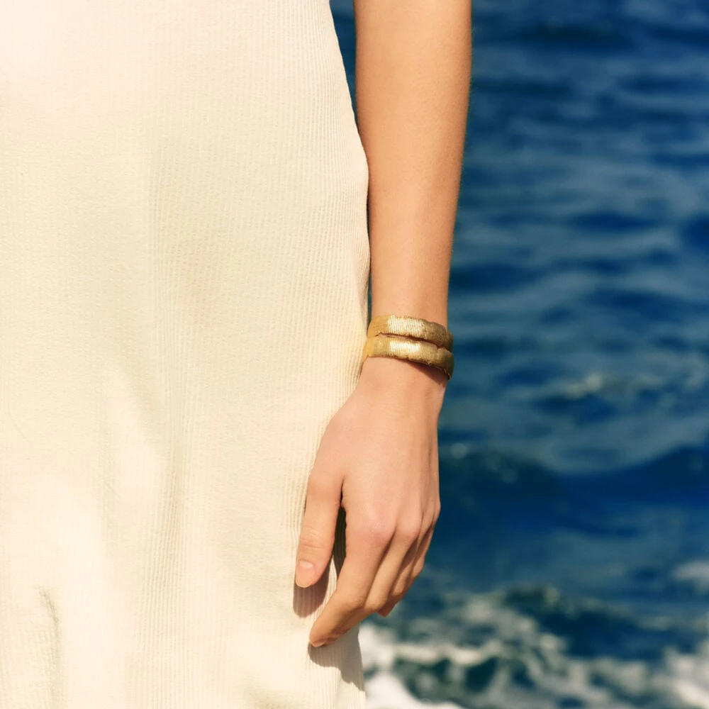 Jonc ouvert, en laiton doré 750/1000, texture de coquillage.