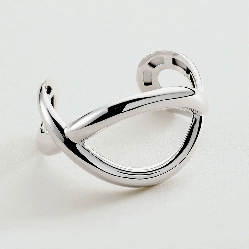 Manchette en argent véritable avec un jeu de gouttes entrelacées.