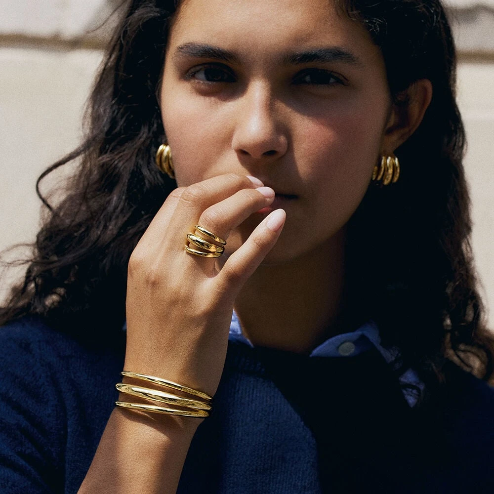 Jonc trois rangs en argent 925/1000 doré à l’or 750/1000.