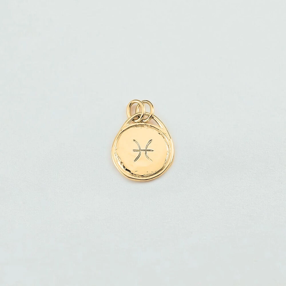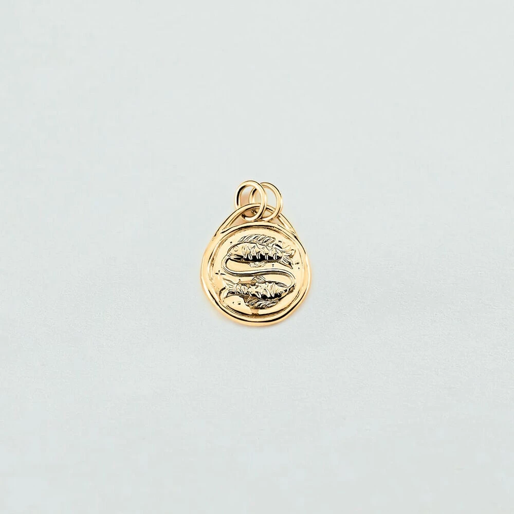 Médaille zodiaque Poissons. Rêveuse et sensible, cette médaille made in France reflète la profondeur des Poissons. En laiton doré à l’or 750/1000, gravée à la main recto verso : deux poissons en mouvement, un monde intérieur infini.