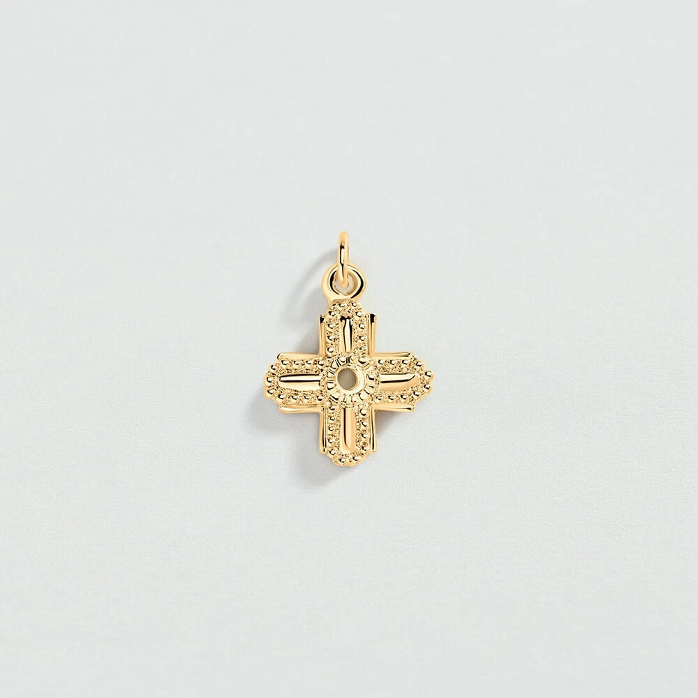 Pendentif en métal doré à l’or fin en forme de croix.