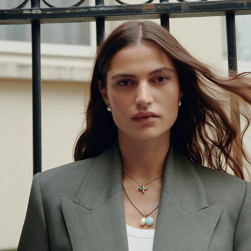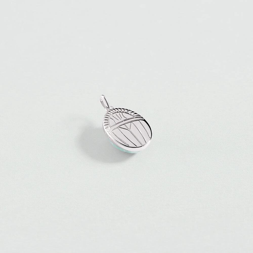 Pendentif charm scrarabé en amazonite et laiton rhodié. Personnalisez votre bijou et changez-le au gré de vos envies en ajoutant à votre chaîne un ou plusieurs pendentifs charms de notre collection Talismans.
